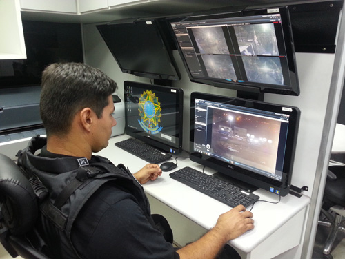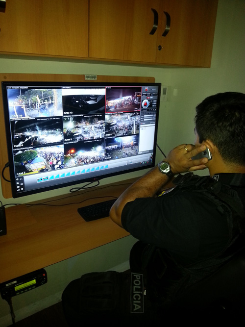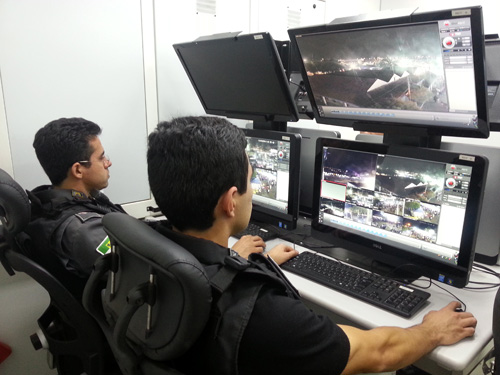 Os telões são, inclusive, sensíveis ao toque. Os policiais podem aproximar, ampliar ou direcionar as câmeras apenas tocando na tela. “É uma tecnologia altamente avançada, que nos permite ter uma visualização muito boa e um controle maior de tudo que acontece”, emenda o major Macêdo. A estrutura ainda inclui um canhão de luz com alcance de até um quilômetro, para iluminar pontos que não estejam bem definidos nas câmeras.